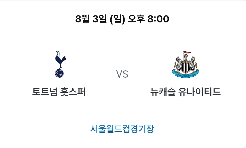 | 토트넘 vs 뉴캐슬 | 2025년 8월 3일 (일) 오후 8시 | 서울월드컵경기장 | 쿠팡플레이 |