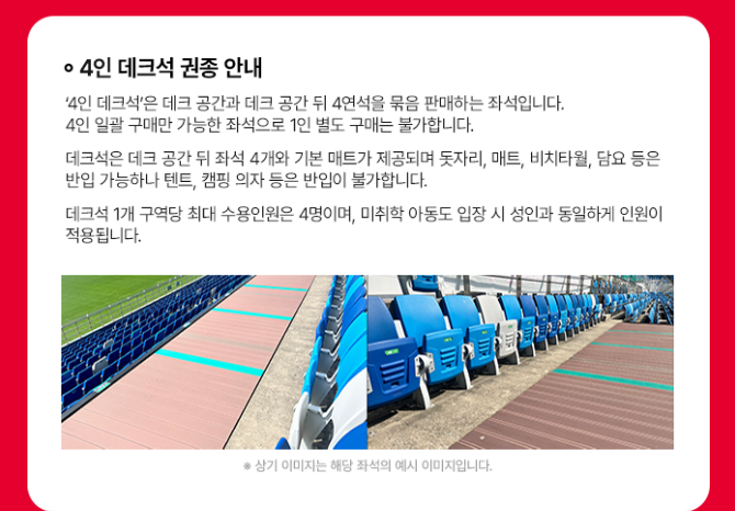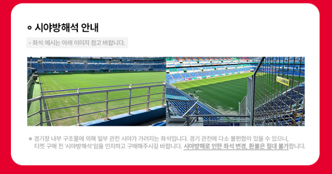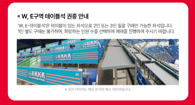 | 휠체어석 | 30,000 | E구역 일부 | 동반자(보호자) 60,000원 유선예매 후 현장에서 증빙자료 확인 시 결제 및 발권 |