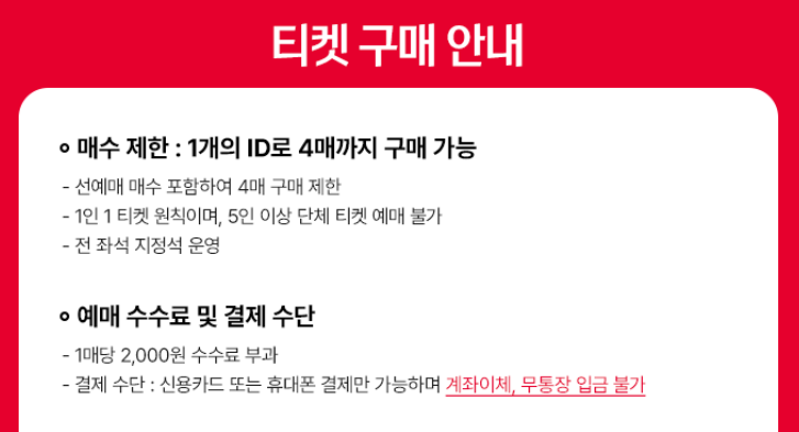- 예매 제한: 1인당 최대 4매까지 가능