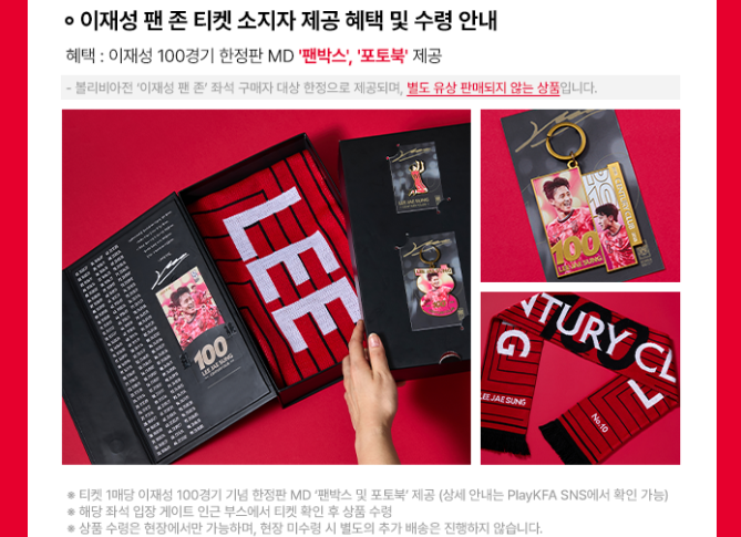 | 이재성 팬존 | 270,000 | W23 | 이재성 100경기 한정판 MD 팬박스 및 포토북 제공 |