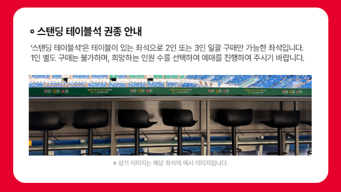 | 스탠딩 테이블석 | 180,000 (1인) | W21,26 S21,22,24,25 |