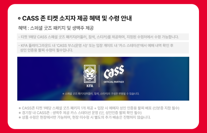 | CASS 존 | 130,000 | E27 | 스페셜 굿즈 및 카스 스테이션(생맥주 제공) 운영 |