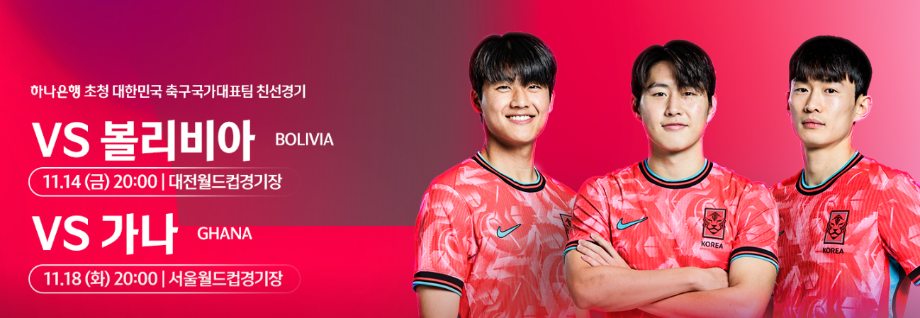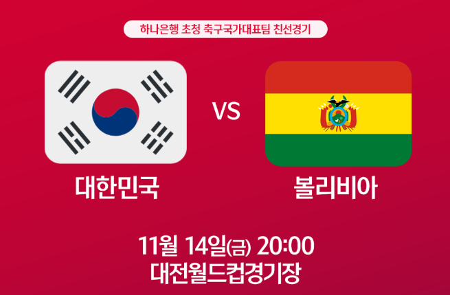 2025년 11월 14일 대전월드컵경기장에서 열리는 한국 vs 볼리비아 평가전은