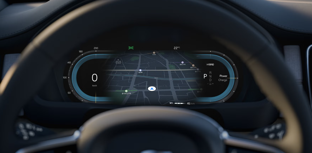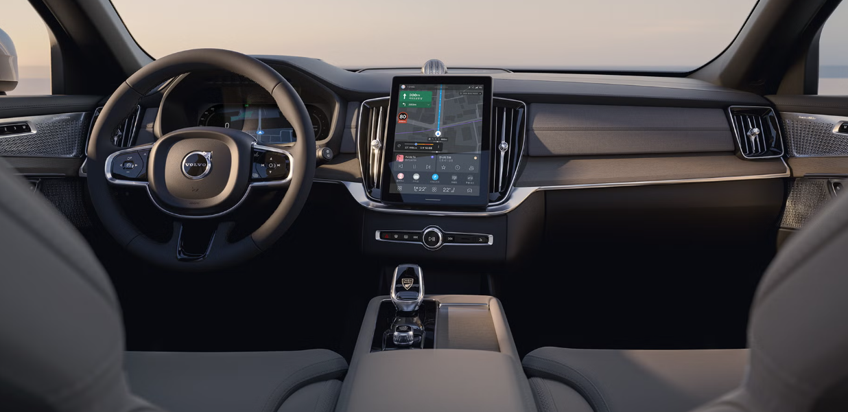 실내는 여전히 스칸디나비안 감성을 유지하면서도, 디지털 감각이 더해졌습니다. 아몬드, 블론드, 차콜 컬러 톤 조합은 고급스러운 분위기를 자아내고, 세심하게 마감된 소재들이 탑승자의 감각을 만족시킵니다.