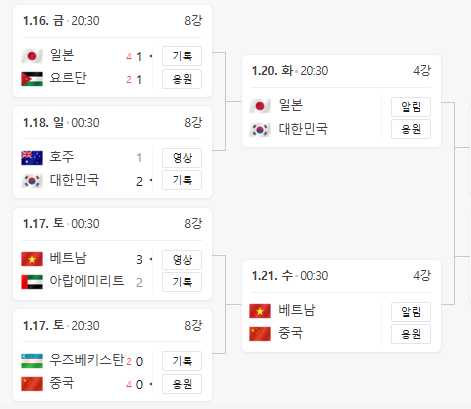 이번 대회는 개최국 사우디아라비아를 비롯한 중동·중앙아시아 강호들이 대거 탈락하고, 동아시아 3팀(한국·일본·중국)과 동남아시아의 베트남이 4강을 독식하며 이변의 연속을 만들어내고 있습니다.